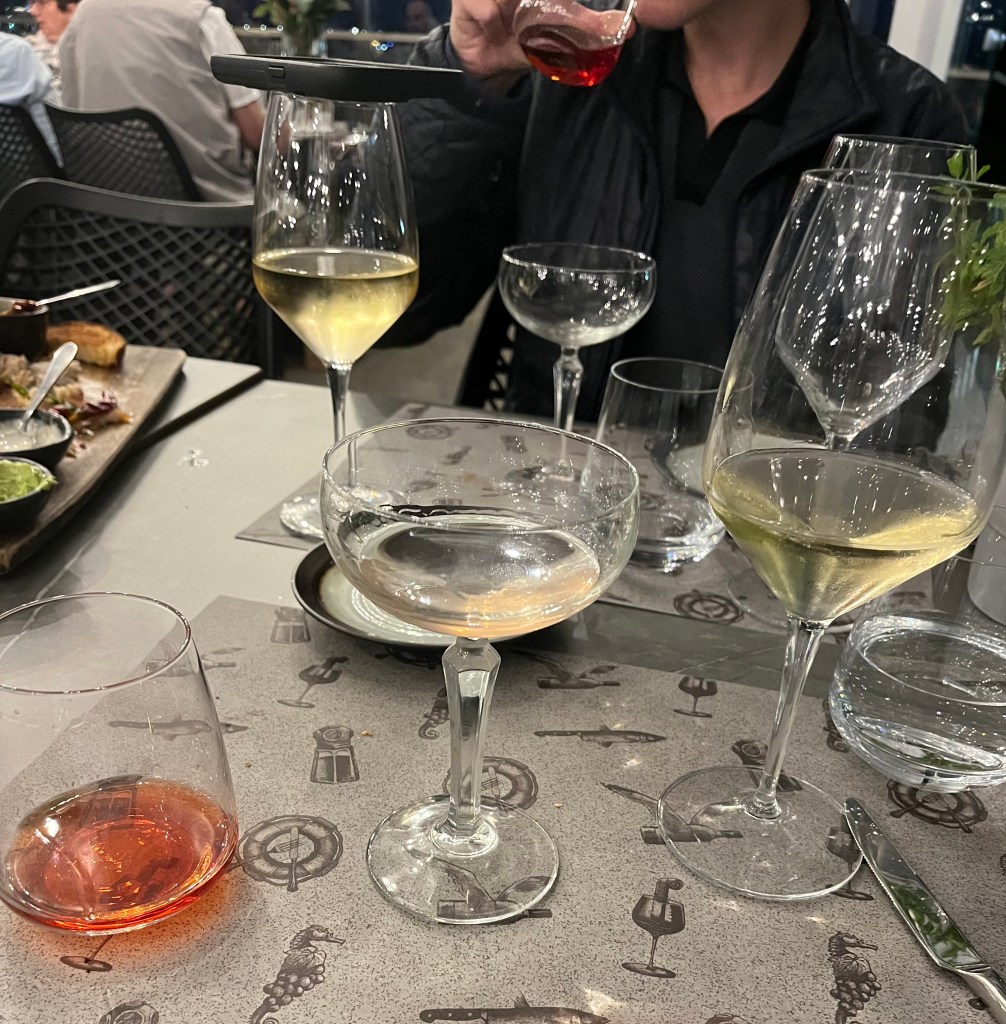 The picture is Spanish white wine from Catalonia, rhubarb gin and strawberries Negroni.
