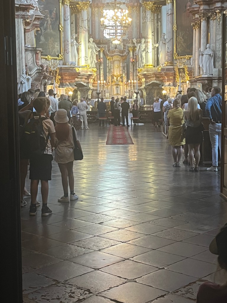 August must be wedding season in Vilnius and Saturday must be the most common date. As we were walking from our AirBNB to the center of the old city, we passed a church and heard music emanating from the church, so we stepped in and a wedding ceremony was being performed. We found a cafe to have lunch and while sitting and eating, two bridal parties drove by. After lunch we explored the Vilnius University (founded by the Jesuits in 1500s) and saw the end of one wedding and another wedding party having their pictures taken. After doing more sightseeing, we stopped at the cathedral and there was another wedding party taking pictures. In all, I think we counted 7 weddings.