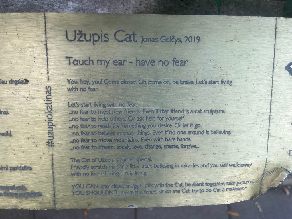 There is a famous statue of a fat cat there and we found it. There is a legend that if you rub the cat’s ear you will have no fear. There is a list of the way you will not have fear on a plaque with the cat statue.