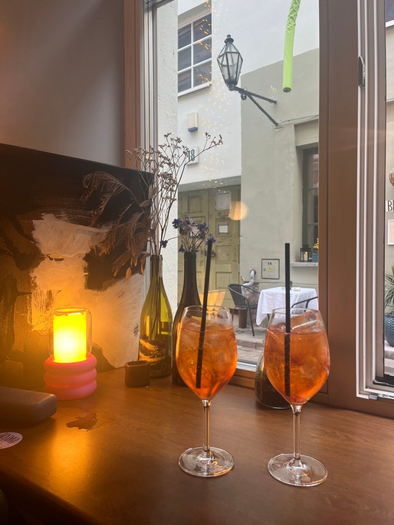 As per our usual day, we found a nice place to have a cocktail before dinner. We sat in the window and watched people walk by on a fun street.