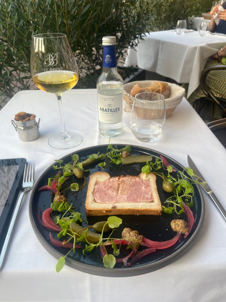 After that I head out for a pre-dinner glass of wine and then dinner. Dinner was a Le Bibent. One of the restaurants recommended by Natalie. It is a very old restaurant in the city. The food was very good. I had Pate En Croute and then Cod Bouillabaisse style. Both were excellent. I had a local white wine Saint Mont with it. It was definitely a good pairing.