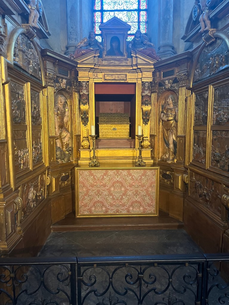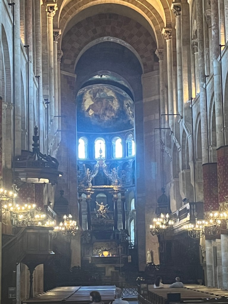 I had my ideal breakfast (petit dejuener) chocolat chaud (hot chocolate) and choclatine (pain au chocolat – chocolate croissant). Wandered around an had a glass of rose in St. Crypien. Then wandered some more and and visit the Basicila Saint Serryin which was magnificent.