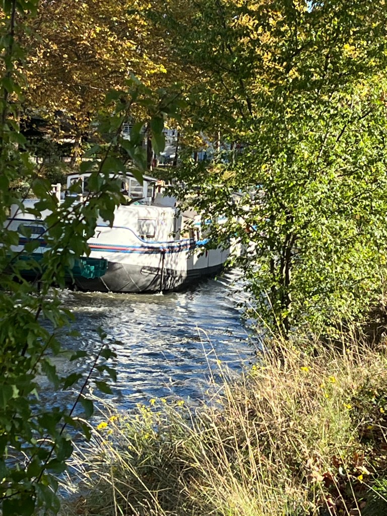 I found the fete on my run. I was running along the canal in the opposite direction than I ran last week. The running got somewhat complicated as there were lots of people along the banks of the canal. I just followed a runner who was running in front of me as we bobbed and weaved around people. One thing I have found from the runs with the group and my own runs, the French are not interested in moving out of the way for anything, pedestrians, bikers, cars, motorbikes or runners. You really have to bob and weave around the whole lot to actually run. Nobody seems to care that nobody moves, they just hold ground and make the other object move around them. I am getting used to it but it has taken some time. I am learning to be brazen. It does make for interesting minute per mile times as I will be going at a pretty good clip and then will have to come to a walk to try to get around people and then speed up again.
