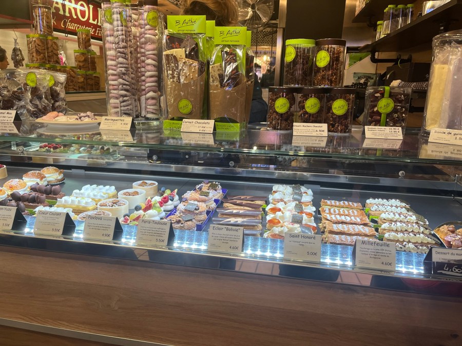 There was a fantastic pâtisserie (Pâtisserie Authie) which I am going to have to shop at very soon. Violet is a flavor that Toulouse is from. Supposedly a soldier brought back a large bunch of violets from Italy and they spread in this area and have become a product for flavoring here. We tried candied violet petals which are used in drinks to add a touch of flavor. Also, had a lovely pastry with violet cream.