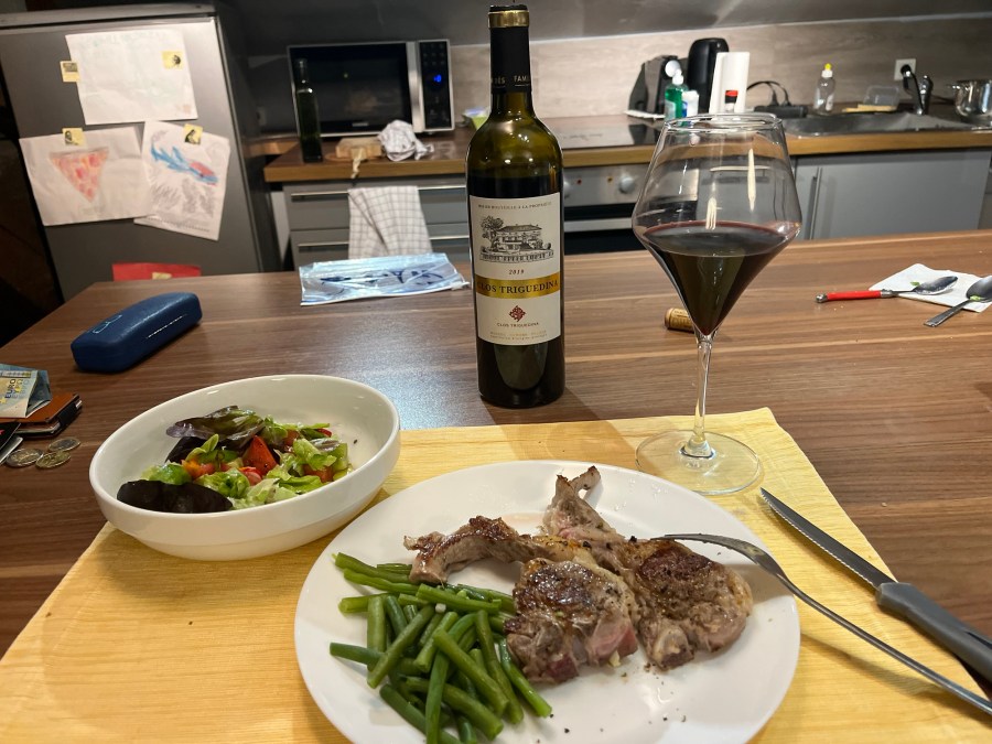 After the tour, I wandered down to the river and sat and read while enjoying the sun and the vibrant nature of Toulouse. I, then, came back to the apartment and cooked dinner with things that I had bought at the morning at the Marché Victor Hugo. I felt almost like a native!. I had bought some wine at Busequets, my go to wine shop, and bought a Cahors Malbec to have with dinner.