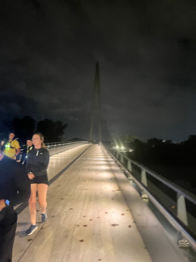 The run was fun yesterday as the time has changed in Europe to Standard Time (a week earlier than in the United States) and the weather warmed up as the day went on so there was a foggy quality as we ran along the river last night.