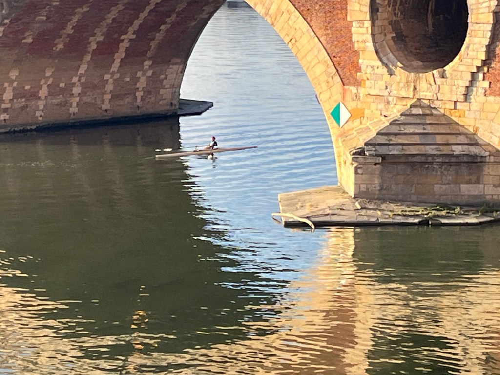After enjoying the buildings, I walked along the banks of the Garonne and enjoyed the sights. There was a rower on the river and it was the first time I had seen that type of activity on the river. It was interesting to see them row down and back up the river. It seemed lonely but serene.