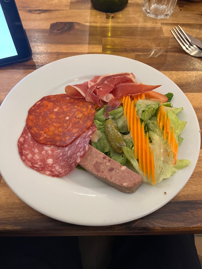I did my new routine of having lunch at a restaurant (big meal) on days when I join the running group. I had a really nice and inexpensive lunch at Restaurant au Gascon. It is off the main streets and I found it by accident. The 3 course meal of day was 13.50 Euros and a glass of wine was 5.50 euros. It was a really good deal and the food was good. I got my first meal with actual vegetables – green beans but they were overcooked but still vegetables. They also added a little salad with the meal.