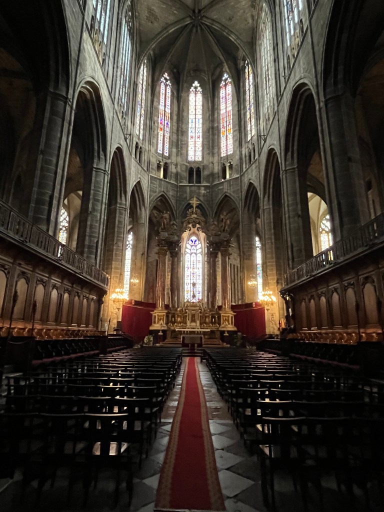 Narbonne cathedral is very spectacular but definitely interesting as they only finished the choir area of the cathedral and never completed the nave. It is about half the size of a normal medieval cathedral. The height and soaring ceilings are the same, it is just truncated.