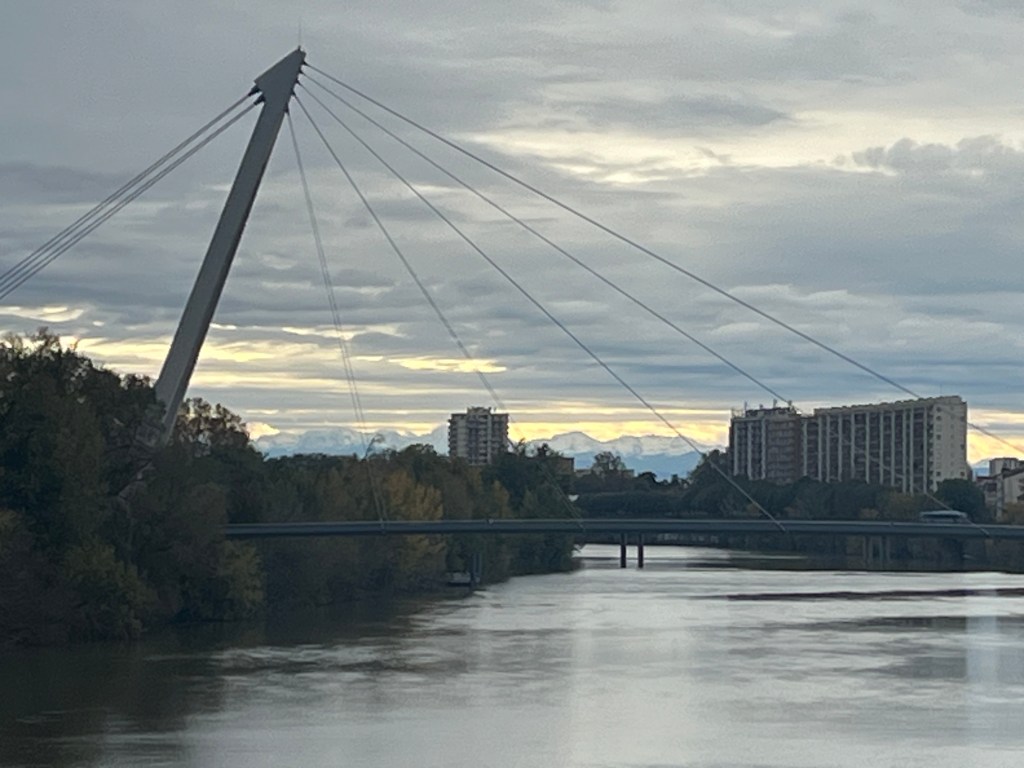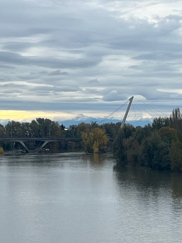 After lunch I walked along the Garonne, one of my favorite things to do in Toulouse. The river bank was very empty compared to usual because of the weather but for me it was still a very nice walk. I realized the mountains I was at sunset were actually real not something of my imagination as I was able to see them again this afternoon. Not sure why I have missed them previously but it might be that clouds obscure them regularly as clouds were hanging above them today.