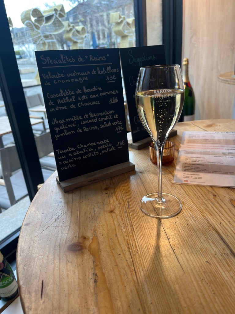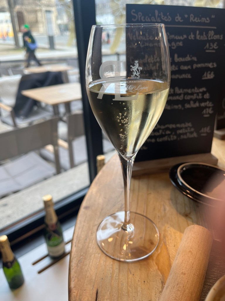 I found a nice cafe/bar and had some more champagne. I figure I need to sample as much as is realistic why I am here. I had a glass of Mercier blanc de blanc and blanc de noir. The blanc de noir was definitely more complex than the blanc de blanc. The bar gave me little munchies to have when I was eating so made a pleasant time. The picture is the blanc de noir.
