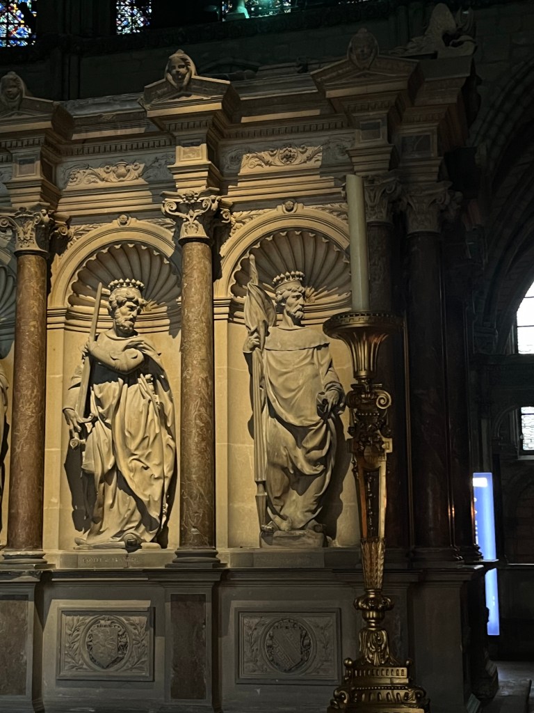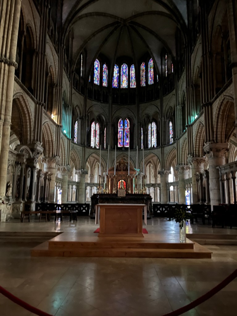 After lunch, I went back over to the Basilica of Saint Remi and went inside to view it. It was spectacular. I was amazed as for most of the time I was there, I was the only person in the basilica. It was build over a couple hundred years and represents Carolingian, Romanesque and Gothic architecture. It was the first Catholic religious building in Reims. Saint Remi baptized Clovis in the late 400s and was the start of Catholic France. Much of it was destroyed in WWI but is has been beautifully restored.
