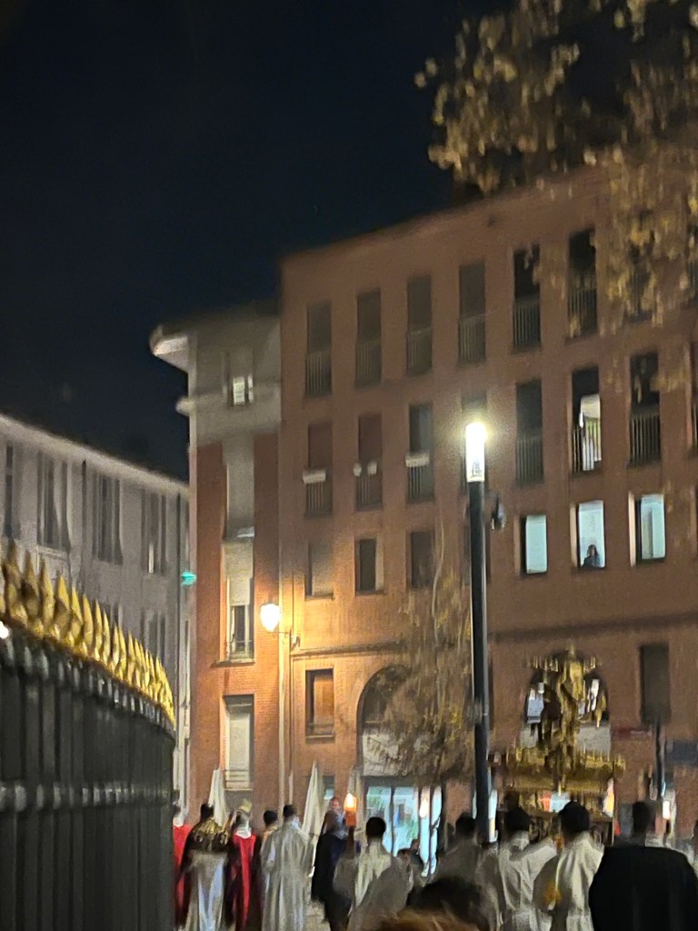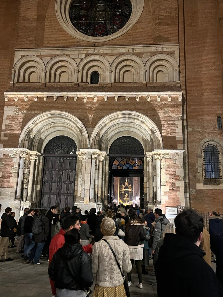 In the afternoon, I went to the Basilica of Saint Sernin as it was the day when they bring the reliquary of Saint Sernin out of it tomb and parade it around be the Basilica. The service begins with a Gregorian Vespers service with beautiful music. After the service, the reliquary is lifted and the clergy and entire congregation processes out of the Basilica and then around the plaza surrounding the Basilica. The procession was very spectacular to watch. The Archbishop of Toulouse was in attendance and led the service. It was definitely not something that one attends or sees in the US regularly.