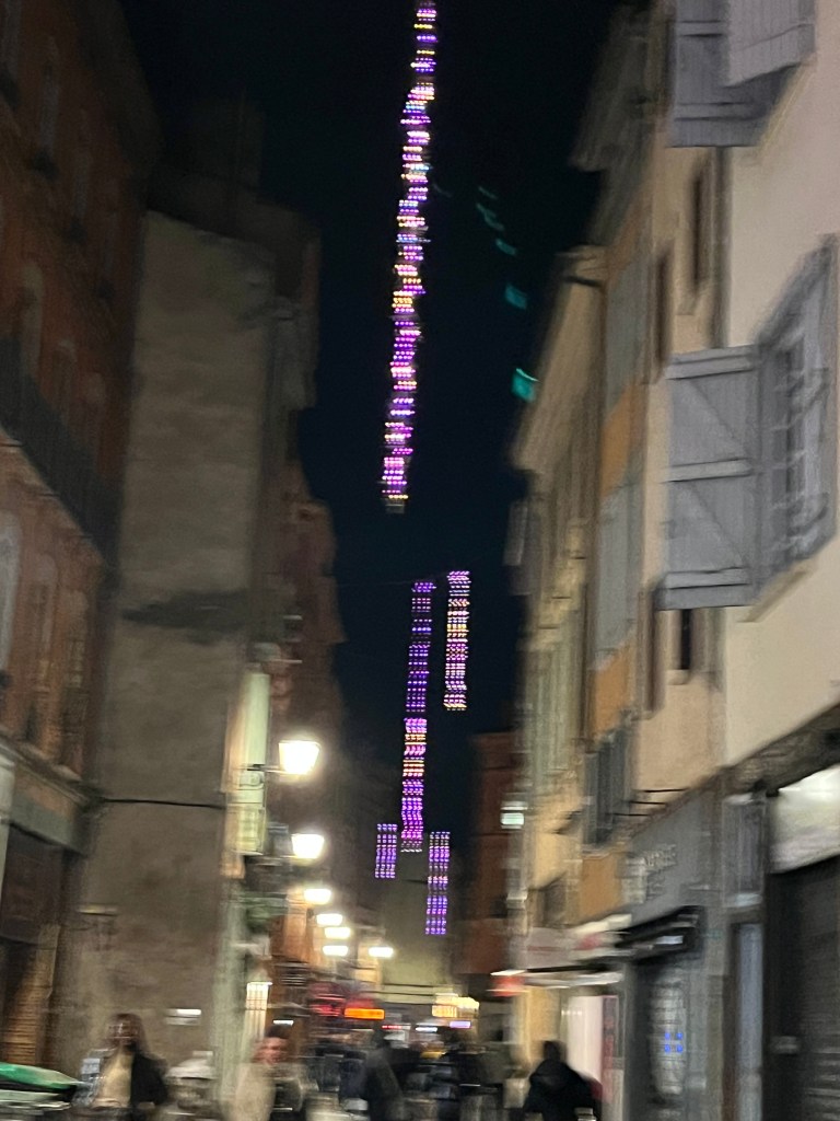 Walking back from Le Panache to my apartment, I was enchanted by all the Christmas lights in the city. All the major streets and some of the minor streets are strung with Christmas lights. Some streets have the same lights but others are all different. Being that the city streets are narrow and most are enclosed by 2-3 story old buildings in is just really magical to walk around at night.