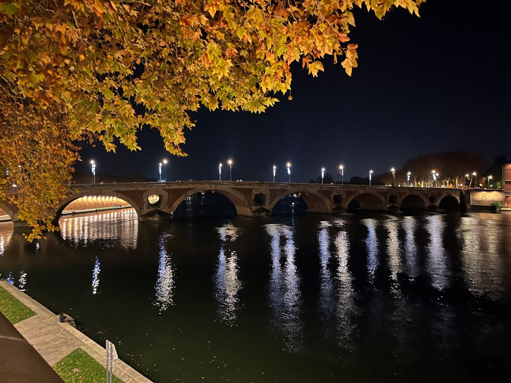 In the evening, I did go wandering around down by the Garonne, one of my favorite activities here in Toulouse. It is so picturesque with the lights on the quais reflecting on the river. The Pont Neuf (which means new bridge and ironically was built in the 1600s) was lit up for Christmas so made for another nice picture.