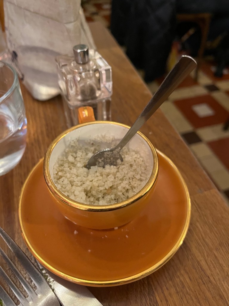 Also for those of you who know abut my obsession with salt, not consuming it but collecting and serving it, the tables all had small coffee/tea cups full of sea salt. I thought it was a very clever idea.