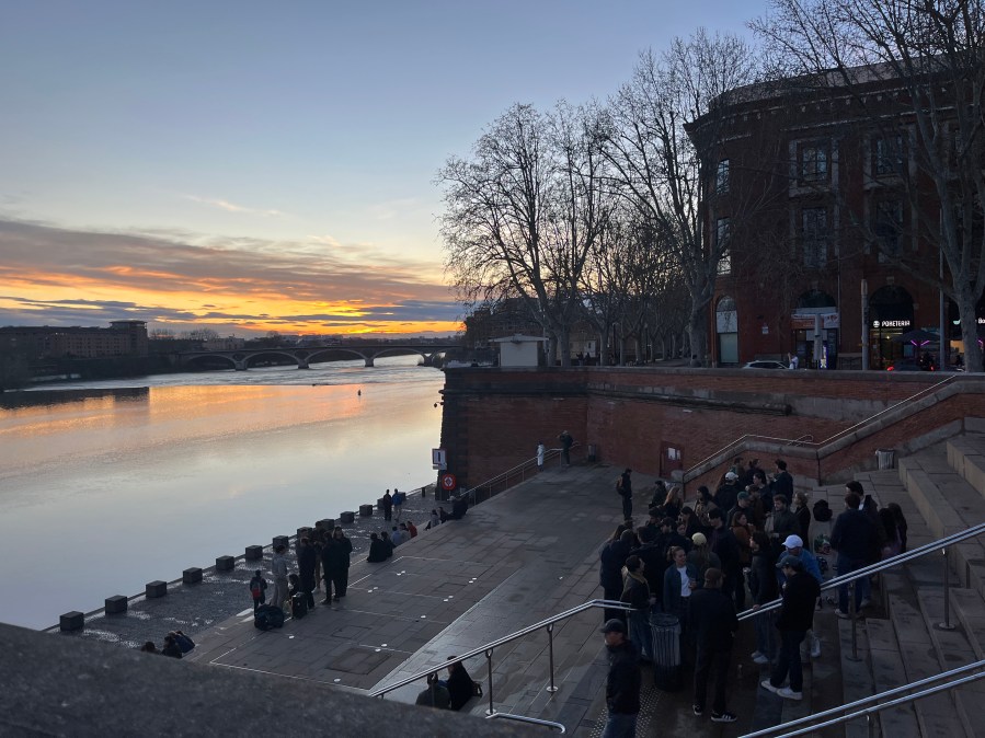 The weather has not been ideal in Toulouse since I have been back. Wednesday when I arrived it was beautifully sunny but very windy. Thursday was overcast and the wind had increased so at time it was hard to walk and the run was challenging. Friday I woke up to rain that lasted about half the day, then it was overcast but no wind. When I headed out to go to dinner, the sun came out and there was a lovely sunset. The temperature has been good during the whole time so it was fine to go out.