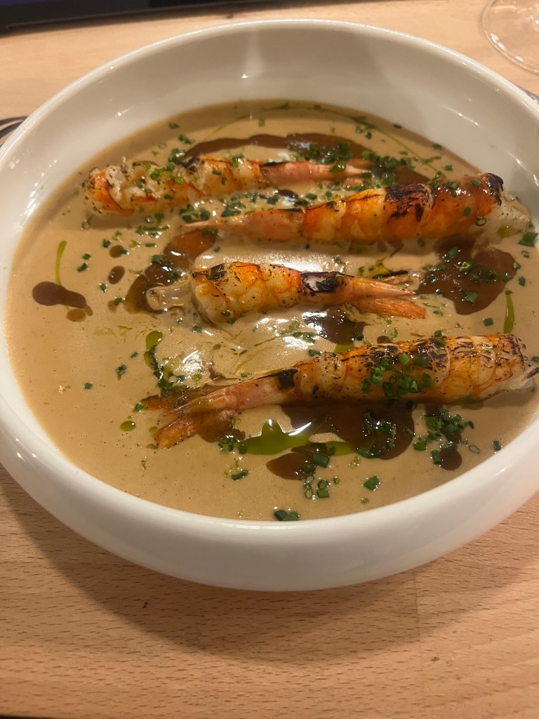 When I walked in one of the staff came over and greeted me like a long lost friend. I got the true French greeting of a kiss on each cheek. He said when he saw my name on the reservations he was excited that I was back. The other server greeted me as well. When the chef came out to get a glass of water, he welcomed me back and said there were new items on the menu that I would like. The chef speaks the best English which is interesting. I feel bad as I cannot communicate as well as I would like with the group as the group does not speak English well and I do not speak French well. We make it work.