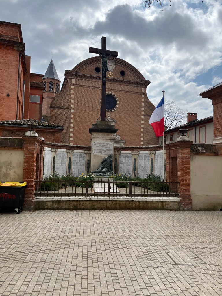 As in Britain and here in France, there were many deaths during World War I and there are many monuments commemorating the deaths in cities and villages. There is a very dramatic and meaningful one here in Toulouse. The white plaques have the names of those who died.