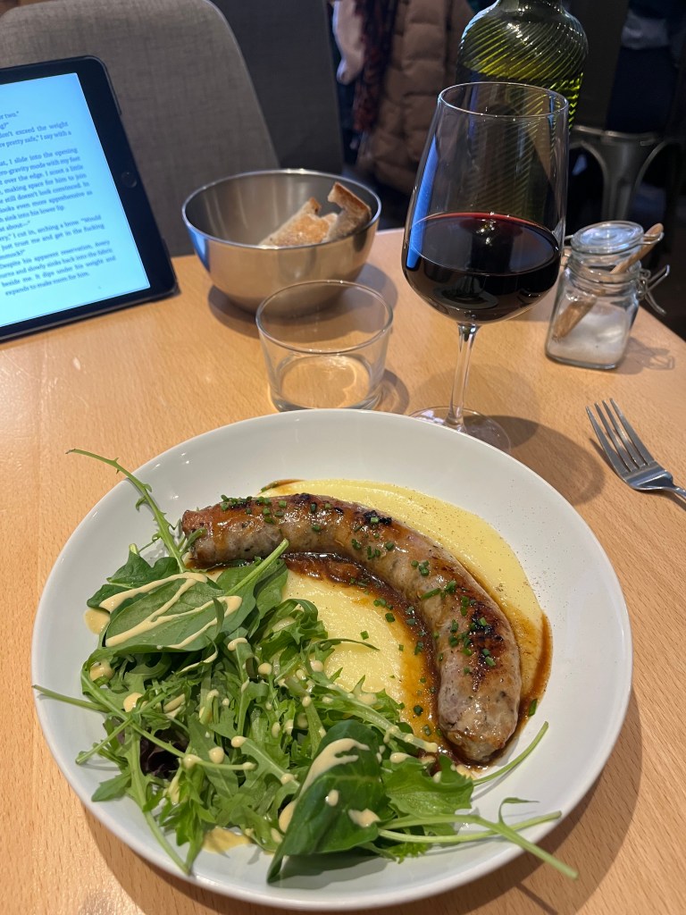 I had lunch at one of my regular destinations, the Petit Quai. Had another great lunch. I had the Sausicon Toulouse which is the local sausage. I think it was the first time that I had tried the sausage.