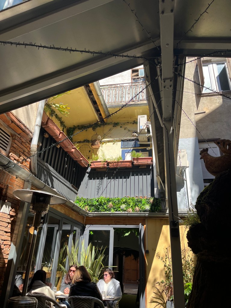 I tried a new restaurant for lunch. As those of you who read this know, I go out to lunch on Tuesdays and Thursdays so I do not have to cook after the running group. I have usually gone to two restaurant, Restaurant Gascon and Le Petit Quai. I decided that I needed to break out of my routine and had seen a restaurant on my walk from the apartment to the Place de Capitole that had a garden. Since it was a beautiful day and sitting outside was definitely an option, I went to Chez Lilly. The garden was quite lovely.