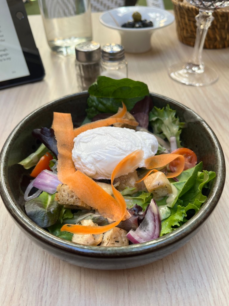Many times we I wondered how the French stay thin when I see the options and size of the meals. They do not really have the massive sizes of the American restaurants but most French eat multiple courses. The standard lunch offers an appetizer, entree and dessert. I usually cannot do all three so I opt for two of the three. This was my lunch today – appetizer and dessert.