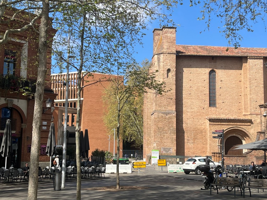 I am always fascinated by the juxtaposition of modern architecture with the old in Toulouse. I am guessing there is not a Board of Architectural Review as there is Charleston, SC and Alexandria, VA which has designated an historic area and all new buildings must be reviewed for how it would affect the feel of the historic part of the city. There is modern right next to medieval buildings. It makes for interesting views of the city. A medieval church right next to the modern University. The new is not compatible with the old and does pay homage to it but definitely is different.