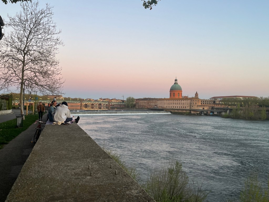 As the day was beautiful and I figured the sunset was going to be nice. I went out after dinner as sunset is not until around 8:30 pm and sat on the wall (where the duck was) and watched the sunset with others. Toulouse is know as the Ville Rose (pink city) because of the red brick architecture and what it looks like at sunset. The sunset showed that off well.