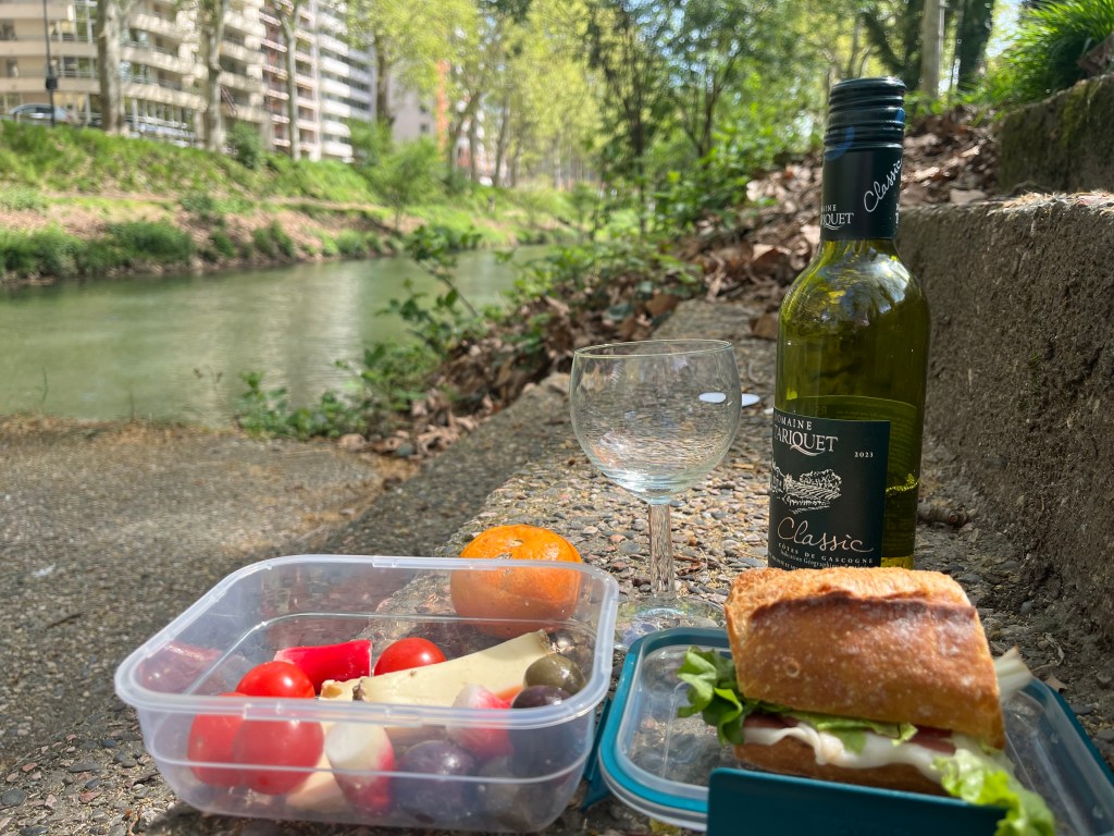 After the shopping, I made lunch and decided to have a picnic on the side of the Canal de Brienne. I chose that location as it was windy again and I did not want to be on the river with the brisk breeze. I found a nice set of steps that were on the canal bank and set up my picnic lunch. I did it the more European way as I brought wine with me for my picnic. I am not used to the consummation of alcohol in public spaces as that is not really allowed in the United States. I enjoyed the quite picnic and reading in a lovely spot.