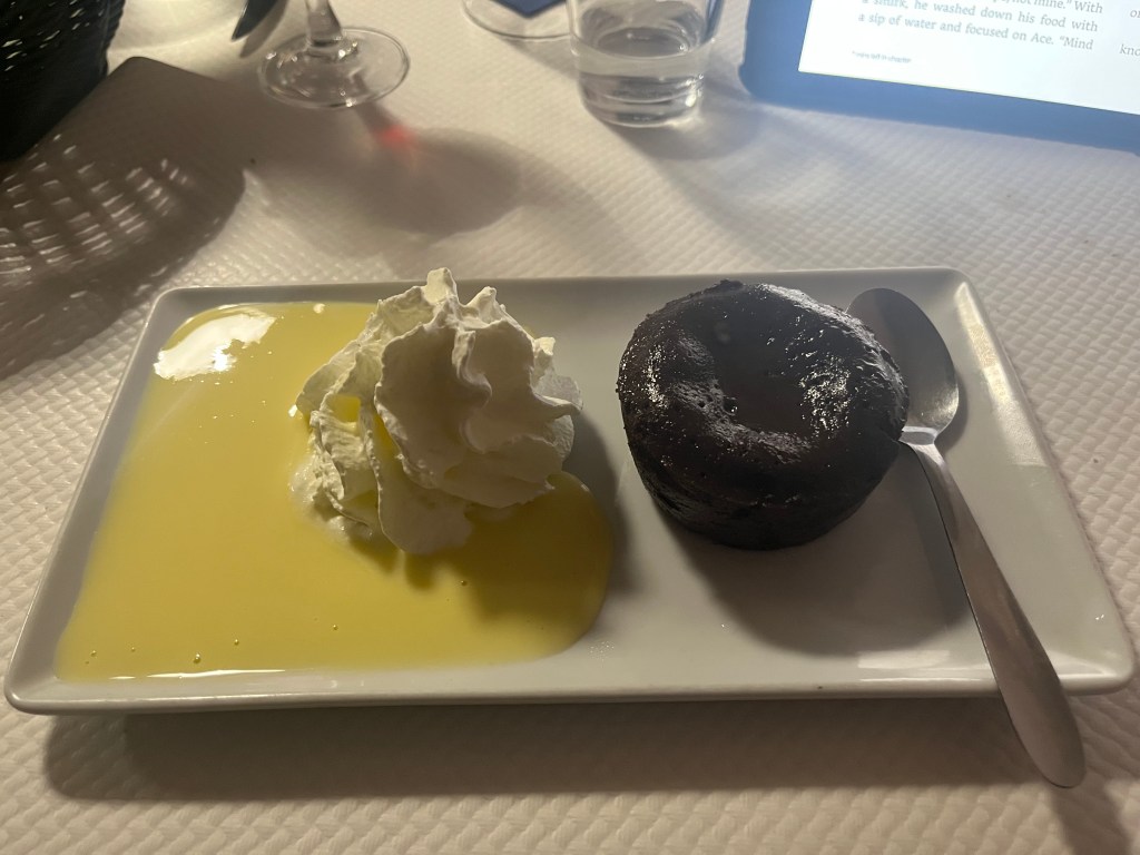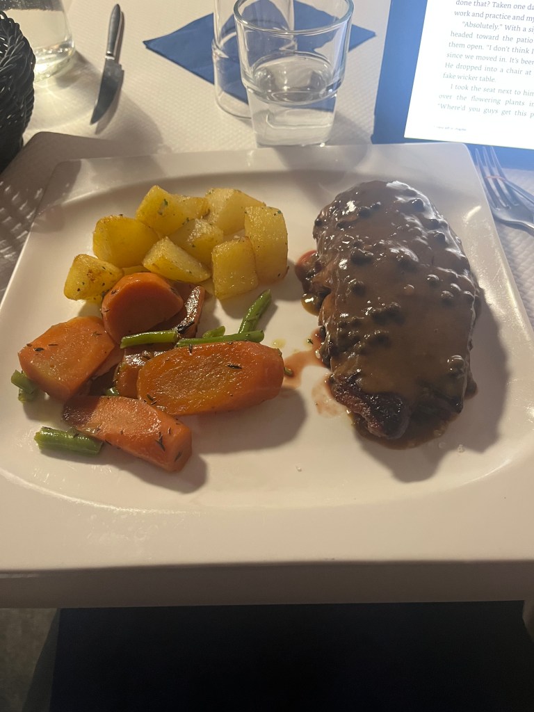 They have a set price menu for 25 euros which includes appetizer, main dish and dessert. The glasses of wine were 4 euros. I had foie gras from appetizer and it was made in the restaurant. I followed that up with Canard (duck breast) in pepper sauce with roasted potatoes and carrots. For dessert, I had chocolate fondant. I had two glasses of wine with dinner. It was all delicious and reasonably priced.
