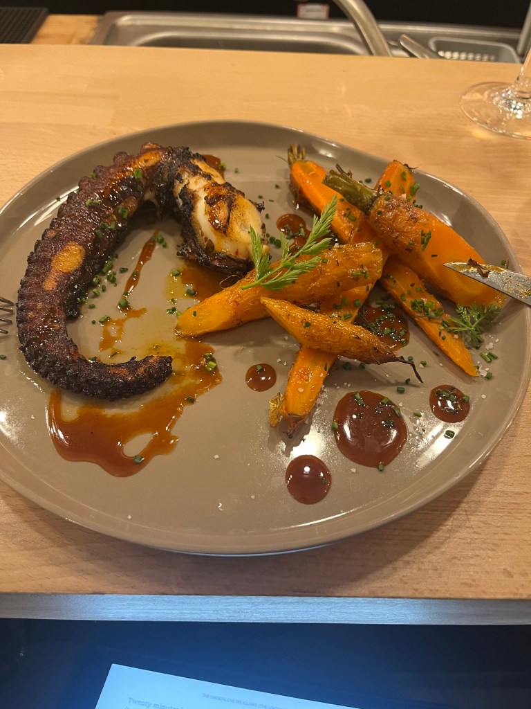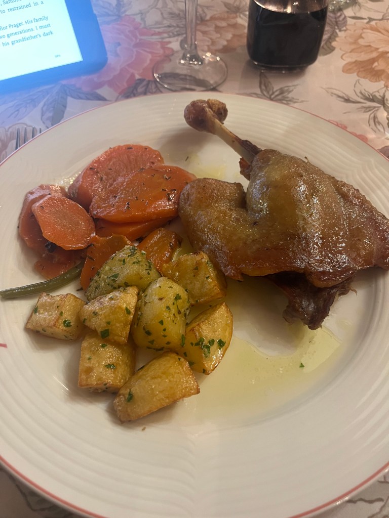 Roast potatoes and carrots seem to be the vegetables of choice this time of year. The last three meals I have eaten out have all featured carrots and two have included potatoes. Neither are my favorite vegetable but they have all been done well so I cannot really complain. Two of the carrots had hits of green beans with them. I had two meals of duck this week. It is very standard here.