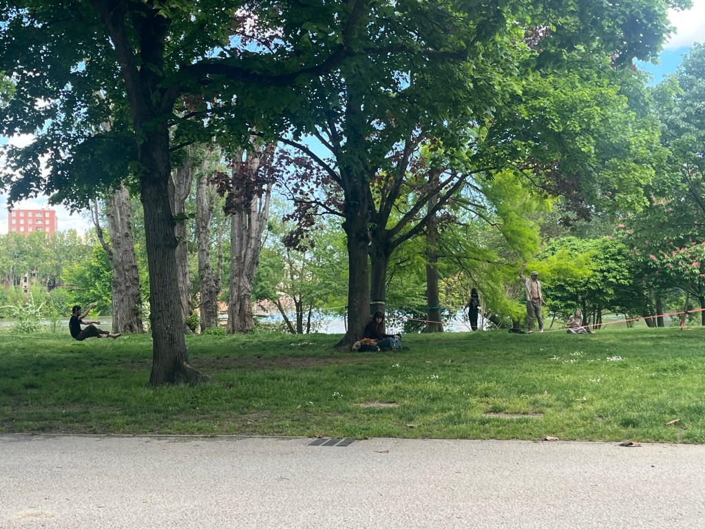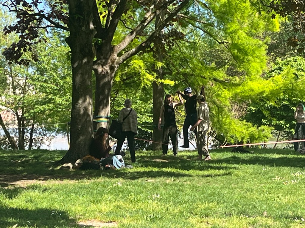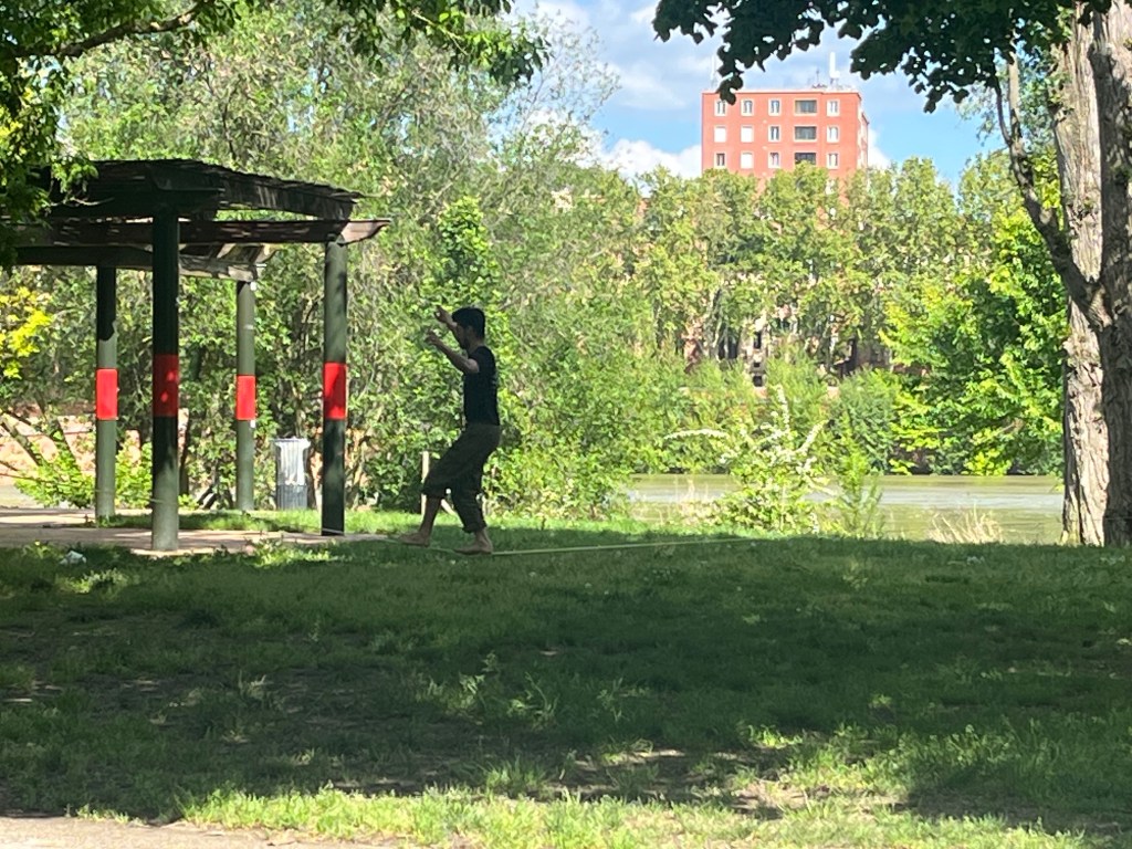 I crossed the bridge and headed to a large park along the banks on the opposite side of the river from where I live. It is on the St. Cyprien side of the river. It was a marshy area that was used to filter water before it went into a medieval water tower for the city. I decided to enjoy the weather and read on a bench for a while. I looked around and saw a group of people practicing walking on tightropes. Not sure I would see that normally in Alexandria/DC area.