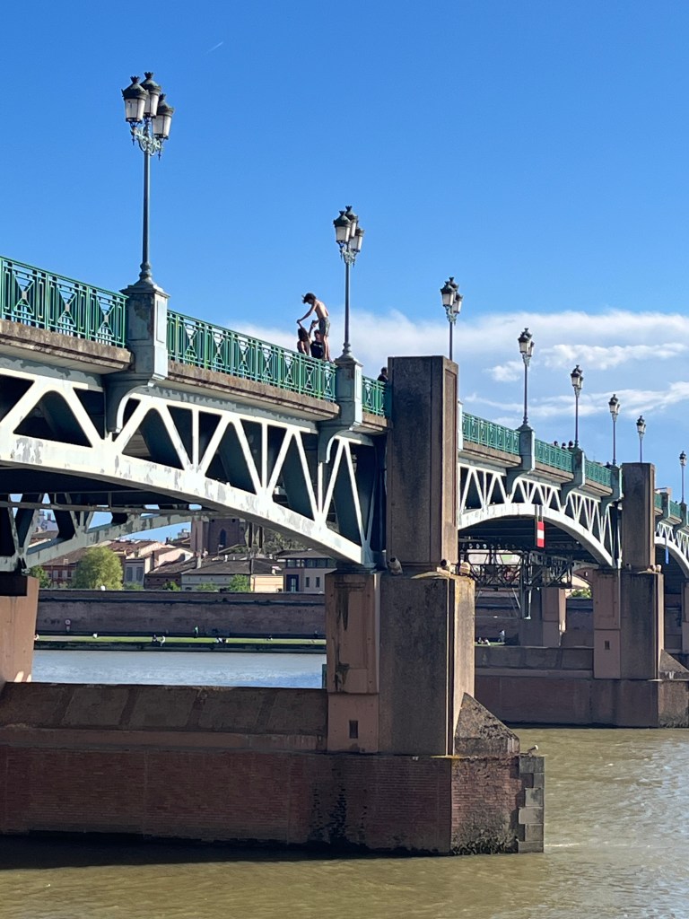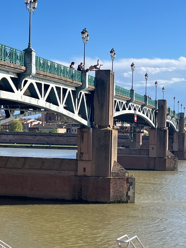 I was still enjoying the warm weather and sun and walked over to the steps down to the river and sat down to read and just enjoy the city life. Next thing I know there were guys who were jumping from the bridge near the steps into the Garonne. I am guessing it was to post on the internet but am not really sure. They jumped twice about 30 minutes apart. The bridge is pretty high up and one was able to do a flip before landing in the water. The interesting part was no one really got excited about seeing this. A couple of girls gasped when they say it. There were a few claps but other than that no one even seemed interested or concerned about it.