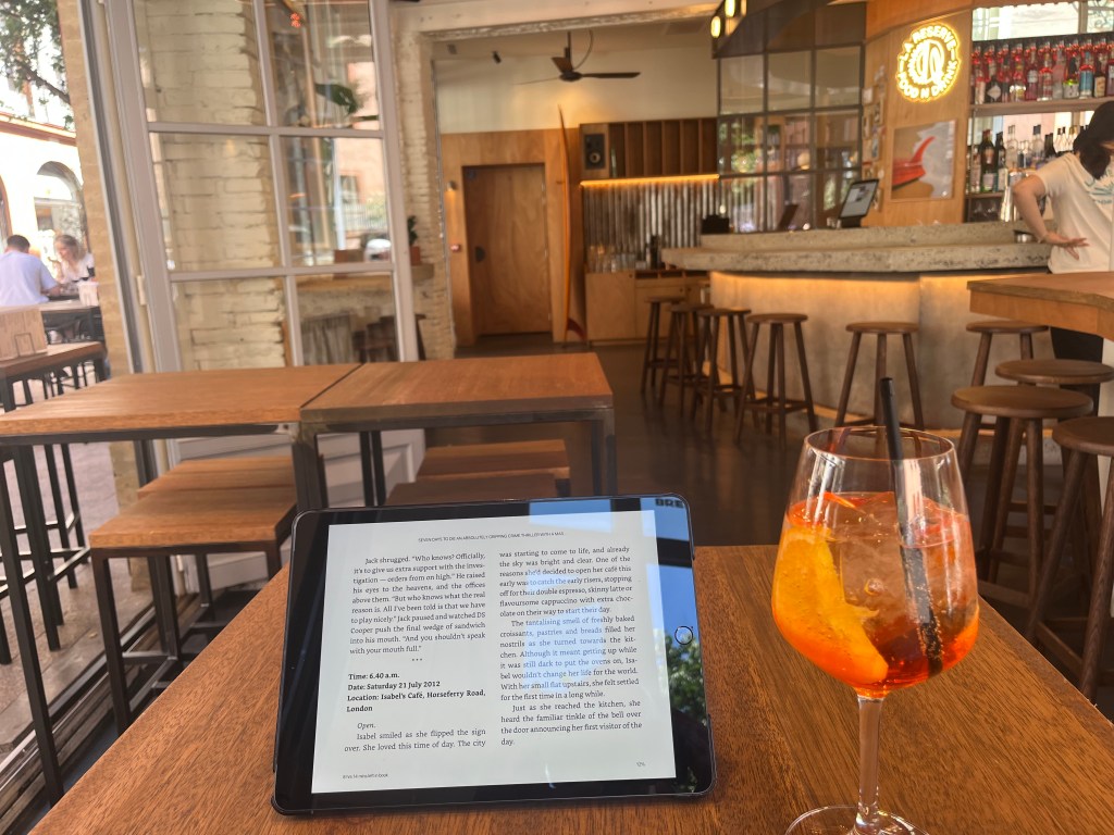 Since it was a beautiful day, after shopping and walking around I stopped at Le Reserve for a spritz. I walked in and sat down. The waitress came over to ask what I wanted and the woman who manages the bar saw me and said “spritz” before I could respond to the waitress. I am a regular there as well. I read and enjoyed the weather.