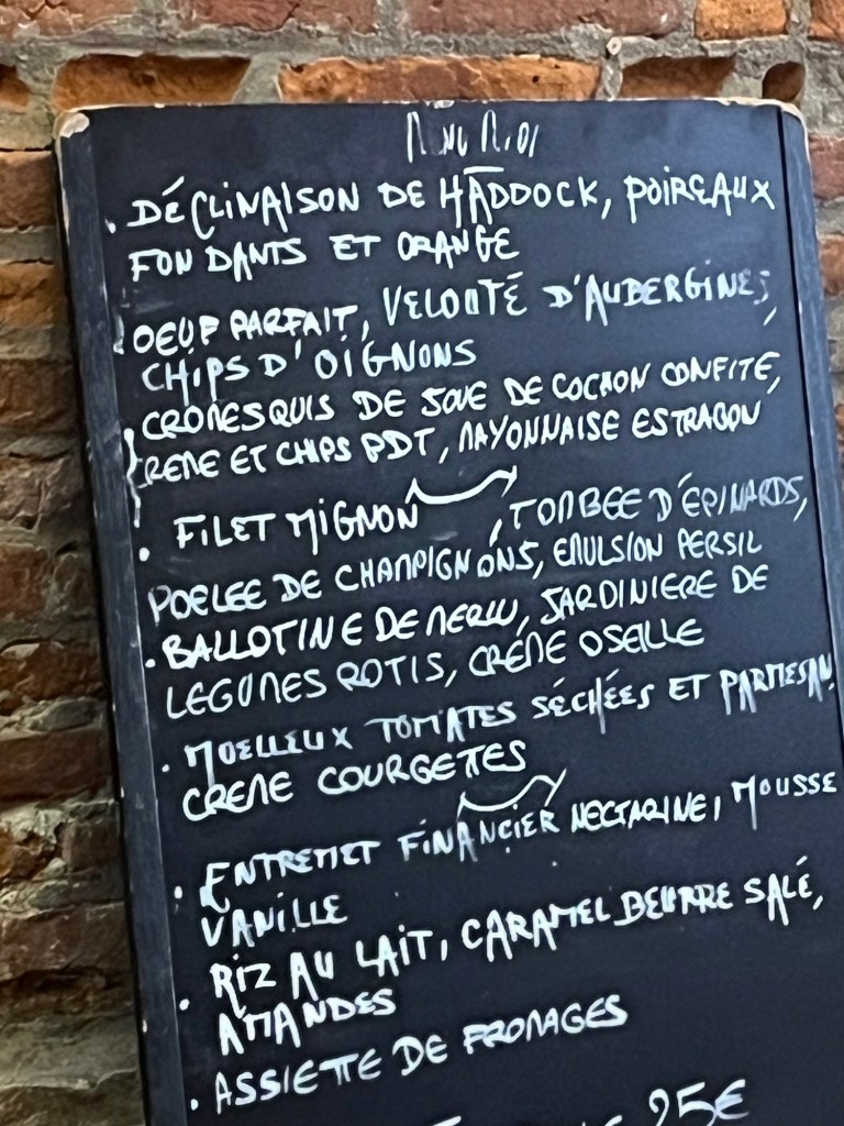 I had my usual lunch at Terra Tolosa. I am always impressed with my meals there. So far, the weekly lunch options have been varied enough that I have not had the same thing. Since I go every Thursday for lunch, I might end up with a repeat but will not complain. The plan is usually three options for entrèes (appetizers), plats (main course) and desert (dessert). One option for dessert is always a cheese plate.