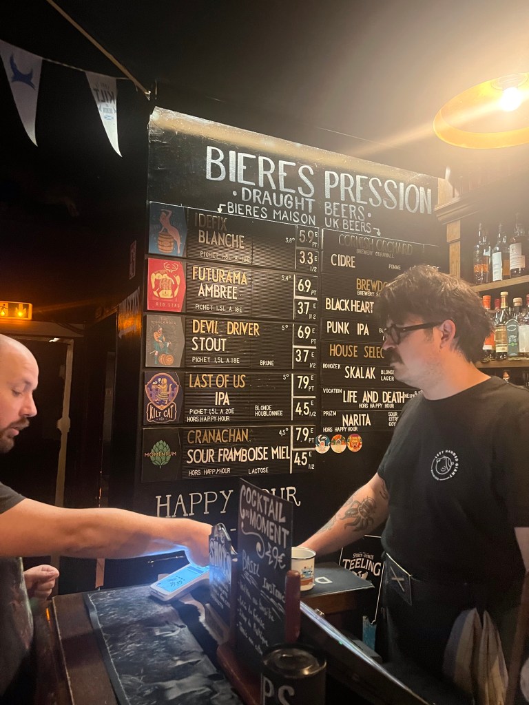 After changing to go out to dinner, we went back to Hop and Scotch for another beer. I have consumed more beer today than in a long time but Jesse is a beer drinker so we were doing activities where he could try different French beers. Hop and Scotch is styled after an English pub.