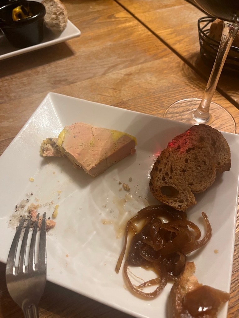 The food was fantastic. I started with house made Fois Gras and then had a steak with Morrell Sauce. Jesse had a stead with Madagascar Green Pepper Sauce and Jen had a hanger steak with shallot sauce. All of this came with salad and potatoes. The food was all fantastic!