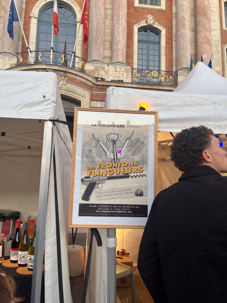 I thought it was a great look for the wine. I tasted it and it was good. I ended up buying a bottle as it was 12 euros. I showed the bottle to Enzo at Le Panache and he said he knew the wine. He also said that the poster was a play on a movie called Les Tontons Flingueurs. The title means the Uncle Gunslingers so they are saying the wine is the Frontons Gunslingers. Fronton is a wine region just north of Toulouse. The wine is made primarily from Negrette.