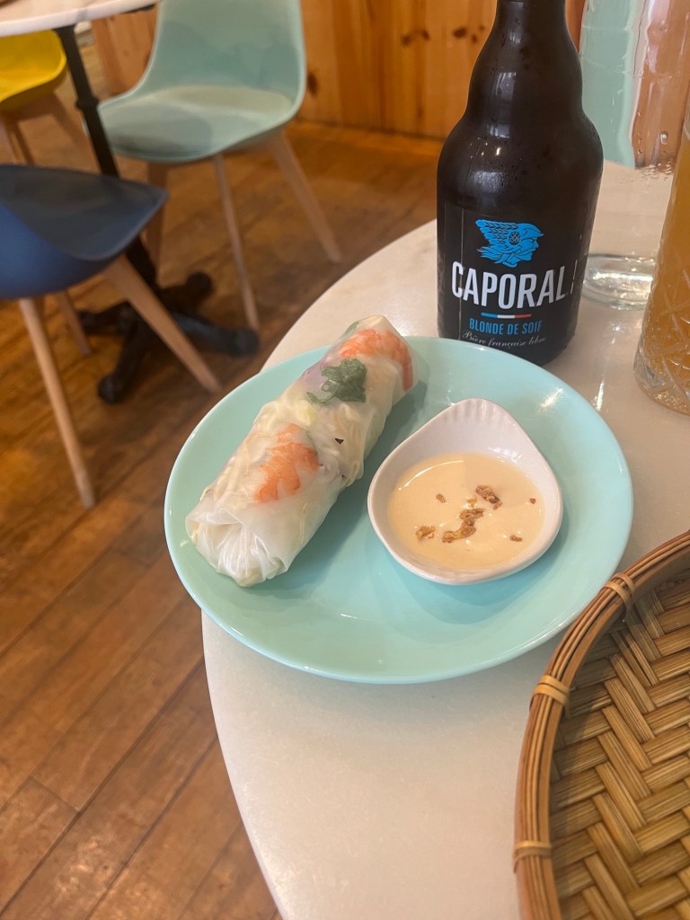 For lunch, I went to Chez Nico which is an Asian Street Food restaurant. I had eaten there before and it is expensive with good food. I had Porc Hachè Carmeliese and a spring roll. Both were very good and nice to eat.
