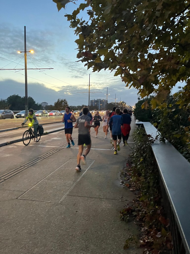 In the evening, I went to the Run in Toulouse. I was probably overdressed as I wore tights. I am always afraid of being cold so at times overdress. The wind was pretty strong but not super cold. I have made a new friend at the run, Marc. He wants to practice English so we run together. I met a young lady, Phillipa, who is British and living in Toulouse. She moved here after university about a year ago. She has been teaching English as a second language online. She heard my English and approached to talk to me. It was her first run with Run in Toulouse. She had run with another group Runs and Buns. I need to find out more about that group.