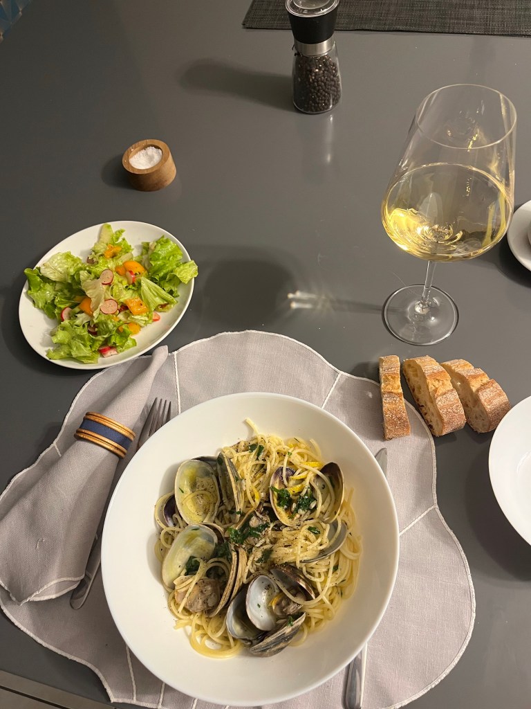 After waking by the pasta store and seeing it was closed. I bought a half bottle of white wine to cook with and drink. It was burgundy Pouilly Fumé. It is a type of wine I like. It was a little expensive for cooking but was very good.