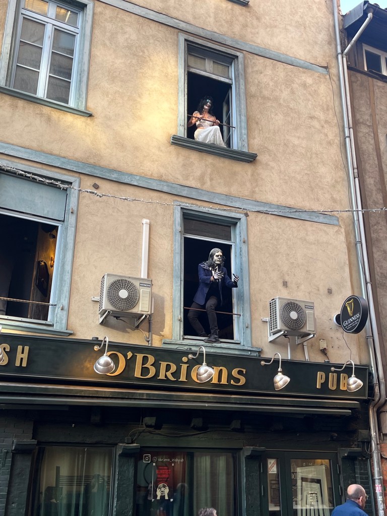 Halloween is celebrated in Toulouse but it is not as big a holiday as it is in the United States. I am not sure this is the case everywhere in Toulouse or in France but the children Trick or Treat at the stores and restaurants not so much the homes. This could be that most of the homes in the city center are actually apartment buildings and require a fob or a code to enter. When I was having dinner at La Panache, a number of children arrived and Ervin and Enzo gave out candy. I saw a number of children stopping at other shops and businesses for treats.