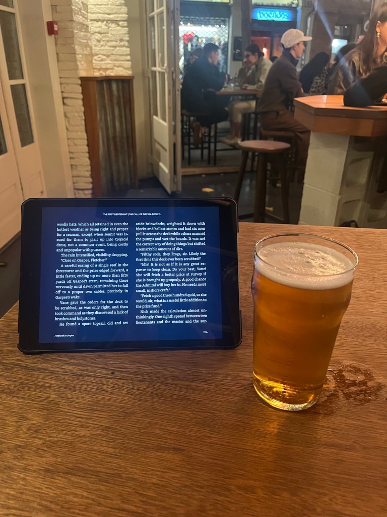 Making up for breaking my commitment to be totally France, I went to La Reserve for a pint of beer and reading before dinner. I want to take part in the cafe life before I succumbed to my desire for something from home.