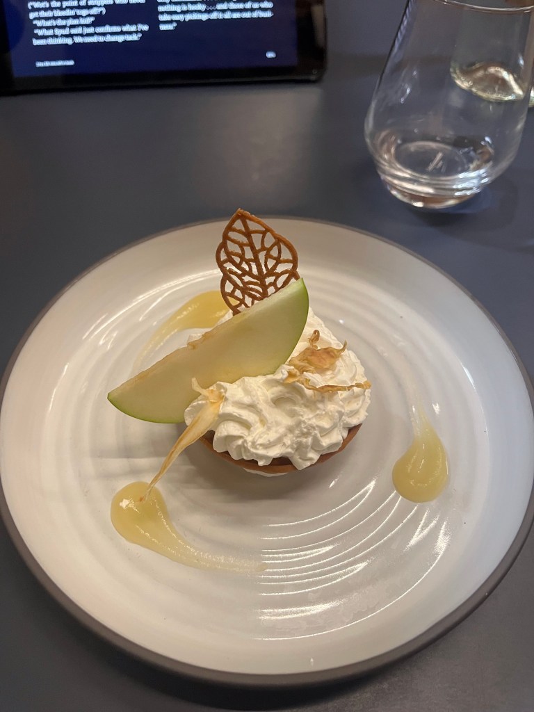 The dessert was an apple and fennel tart. That is not a combination that I would have ever considered but it was the perfect combination of flavors. Also, the dessert was light compared to the other dishes so it made a refreshing end to the meal. The cream on top was anise liquor infused which very well with the fennel. It was a delightful end to a fantastic meal.