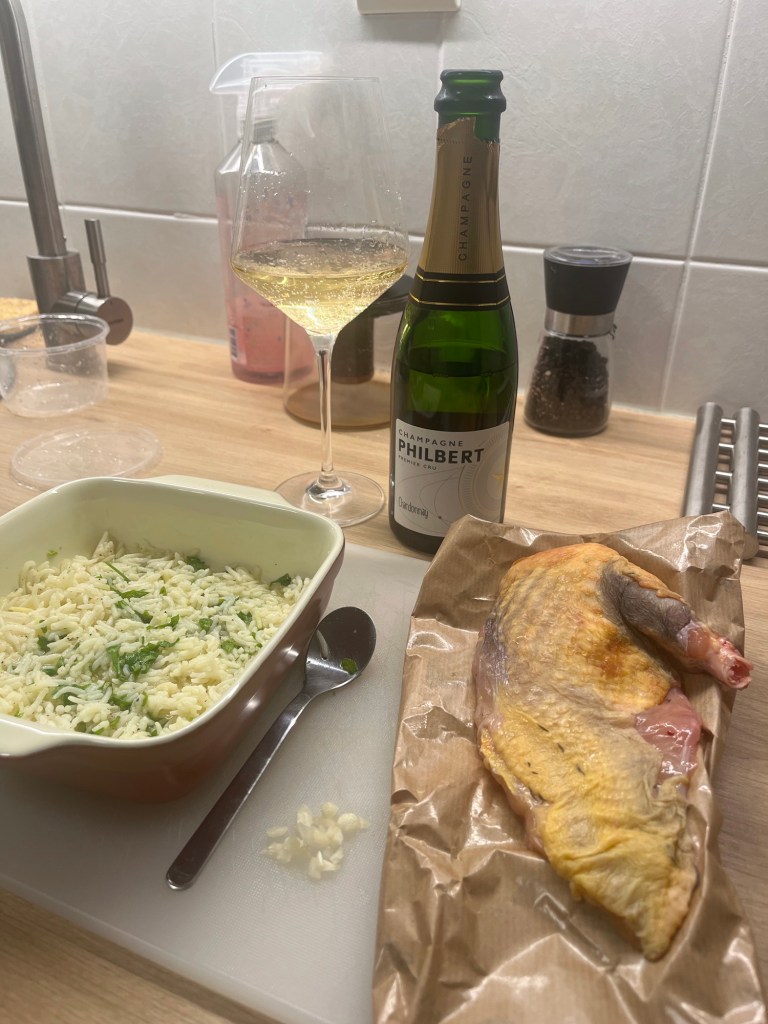 The best part was I opened one of my half bottles of champagne. I did not have a champagne coupe or flute so I drank it out of the wine glasses that I had. I love champagne and this was 100% Chardonnay so had that lovely brioche nose and a great flavor. It was Champagne Philbert. I bought it at Salon Vins in late October.
