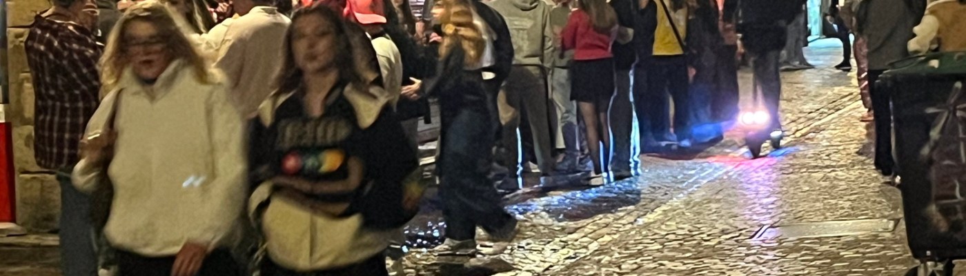 The post picture was outside of a club as I walked home. I am not sure what was going on but there must have been some kind of festival. All the young kids were wearing lanyards that held a plastic cup. They had bandannas on. Everywhere I walked on the way home, I saw lots of kids and they seemed to be wandering from bar to bar. The night was very lively.