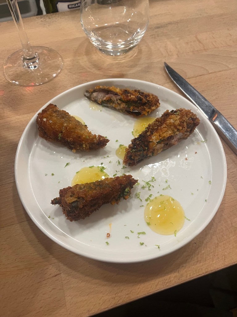 The other dish was breaded sardines. I love sardines so I tried it. They were good but I definitely prefer grilled sardines. Enzo’s father even said that the sardines were not as good as the gyoza.