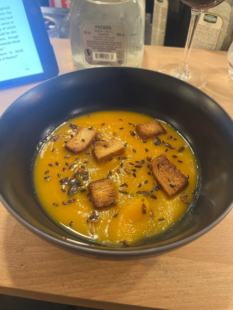 I went to La Panache for lunch as I want to get in more than one visit before I leave. I always have Friday night dinner there but went for lunch. The formule there is good and the food is always interesting and good. I had butternut squash soup. Butternut squash soup is one of my comfort foods so on a chilly day it was perfect.