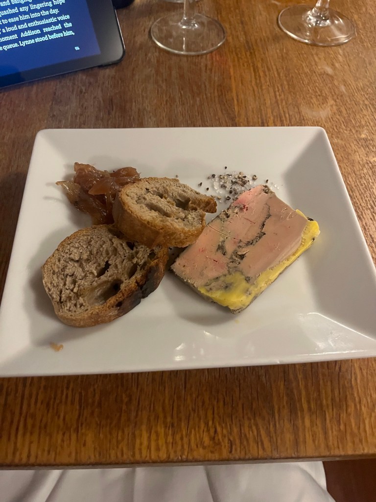 I had my last serving of foie gras for dinner. It is so good but not really good for you. I will miss it but it will be better not to have it when I am in Alexandria. The foie gras is restaurant made which makes it even better.