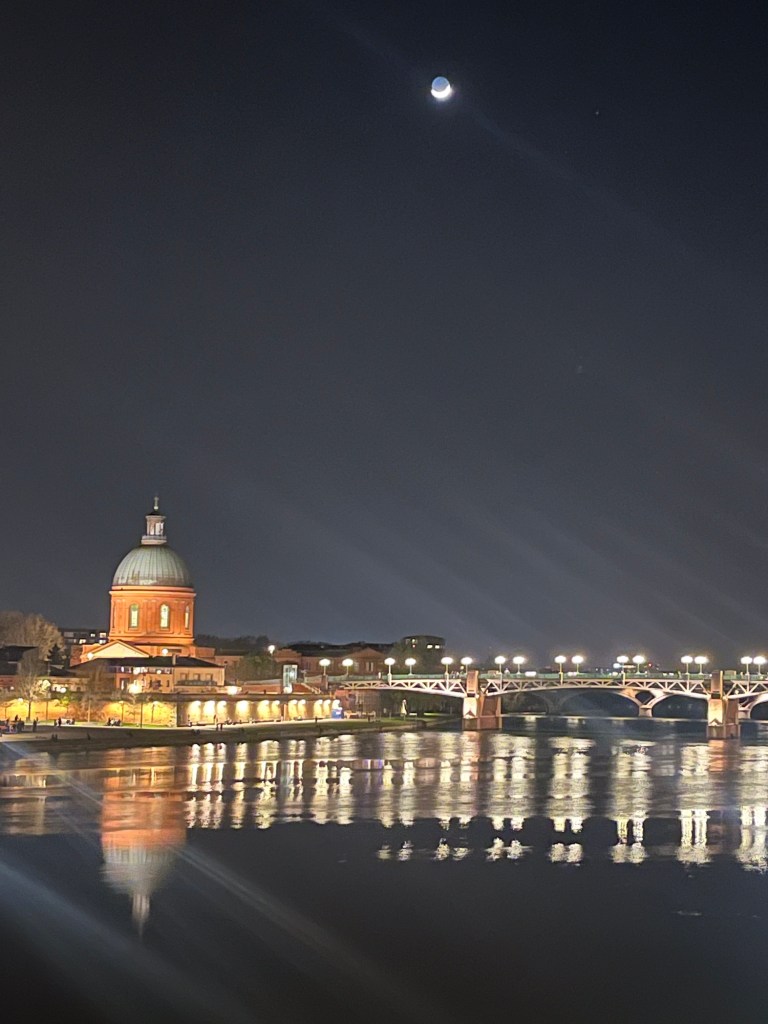 The walk home was lovely as usual with the different building lit up and reflecting on the river. Since the weather was lovely there were tons of people out and about. Another nice day in Toulouse.